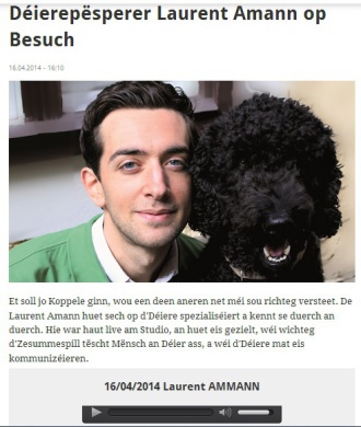 Laurent Amann ist Live-Gast auf RTL Radio Luxemburg. Der Tierflüsterer spricht mit dem Moderator Patrick Greis über sein Gespür für Tiere schon im jungen Alter und verrät den Zuhörern, worauf Tiere wirklich beim Menschen achten. Außerdem hilft der Tierkommunikator einer Telefonanruferin das Verhaltensproblem ihres Maltesers zu lösen, der gestresst potentielle Gefahren verbellt.