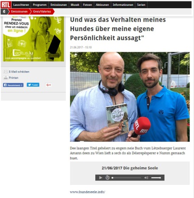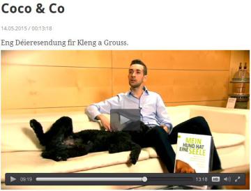 in seiner Heimat Luxemburg, in der Sendung Coco & Co auf RTL Letzebuerg über sein Buch "Mein Hund hat eine Seele". Warum hat er das Buch geschrieben? Was hat ihn inspiriert? Was nehmen Leser vom Buch mit?